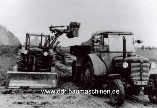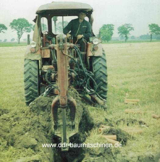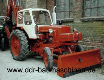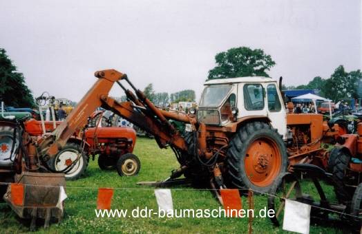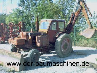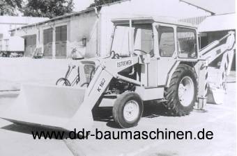 KSH-45A In den sechziger Jahren ebenfalls in die DDR gekommen, war der KSH nicht soweit verbreitet wie die sowjetischen Traktorbagger der E-Reihe. Als Basisfahrzeug diente ein Traktor URSUS C-355, mit einem 4-Zylinder Viertakt Dieselmotor S-4002, der 55 PS bei 2000 U/min leistete, einem mechanischem Wechselgetriebe mit 8 Vorwärts- und 2 Rückwärtsgängen, sowie einem sperrbaren Differential, das den KSH auf eine Geschwindigkeit von 25,6 km/h beschleunigte. Zwei Hydraulikpumpen mit einer Leistung von 83 l/min bilden das Herz der Hydraulik des KSH. Das großzügig und voll verglaste Fahrerhaus bietet dem Maschinisten optimale Sichtverhältnisse. Durch Lösen von 4 Bolzen am Heckanbau des Baggers, konnte dieser in der Breite des gesamten Querrahmens verschoben werden. An Ausrüstungen gab es für den KSH einen Hochlöffel mit 0,16 cbm, einen Tieflöffel mit ebenfalls 0,16 cbm sowie eine Ladeschaufel mit 0,24 cbm Inhalt. Eingesetzt wie auch alle anderen Traktorbagger wurde der KSH im Meliorationswesen, im Bauwesen zum Ausheben von kleineren Fundamenten und Baugruben, Grabenaushub jeglicher Art und auch zum Beladen von LKW bis zu 3m Bordwandhöhe. Wie immer zum Schluss auch hier ein Preis, nämlich kostete der KSH 1973 schon 56000 DDR Mark.