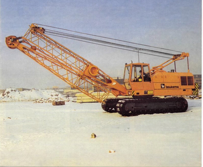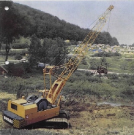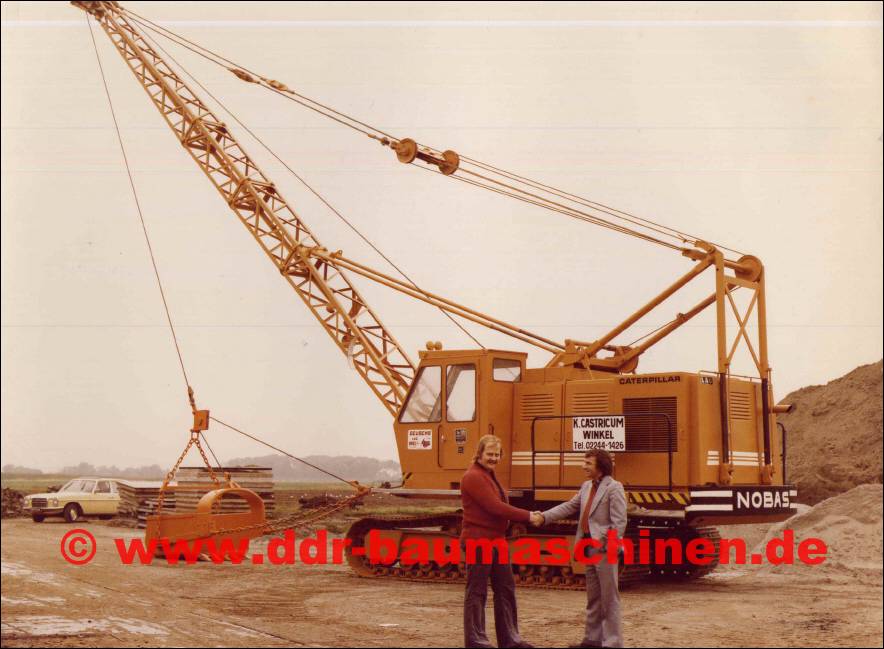 Ganz neue Wege ging NOBAS im Jahre 1976, bei den Typen UB 1232 und UB 1252, wobei bei diesen beiden Typen die gleichen Unter- und Oberwagen sowie die Grundauslegerverstellung verwendet wurden. An den Grundausleger des UB 1252 wurde ein Gittermast montiert, der durch hydraulische Wippzylinder verstellt werden konnte. An Arbeitsausrüstungen standen eine Zugschaufel- und eine Greiferausrüstung zur Verfügung. Als Antrieb diente ein Wassergekühlter 6-Zylinder Dieselmotor des Typs 6 VD 14,5/12-1 SRW mit einer Leistung von 155 PS bei 2000 U/min. Bei einer maximalen Auslegerlänge von 18,7 m, ließ sich um immer noch ein Durchmesser von 35 m beim Umsetzen von Erdstoffen erreichen. Man mußte natürlich Kompromisse eingehen und man entschloss sich ab 1983 beide Projekte (UB 1252 und UB 1232) getrennt zu verfolgen. Von dem Typ UB 1252 wurde zwischen 1979 und 1984 auch eine Kranversion als UB 1256 gebaut.  |