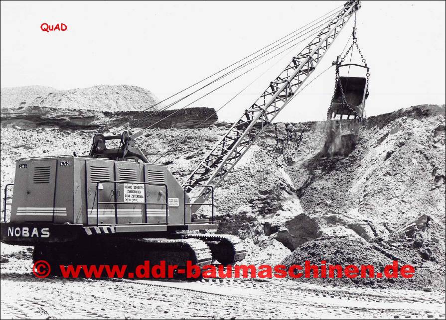 Seilbagger sind die ältesten bekannten und ersten Bagger, die es überhaupt in der Baggergeschichte gibt. Die ersten Seilbagger die es gab, kamen in den 50-iger Jahren aus Nordhausen und waren teilweise Nachbauten von O&K Baggern. Der Standardseilbagger der 60-iger und 70-iger Jahre war der UB 80 von NOBAS Nordhausen. Abgelöst in den 70-iger Jahren vom UB 1212 und in der 1,5 cbm Klasse vom ZEMAG UB 162, hat der UB 80 fast 30 Jahre seine Dienste getan. Bis auf wenige Importe aus der UdSSR und Polen waren die Seilbagger der UB Reihe von NOBAS die bestimmenden Bagger auf den Baustellen der DDR, bis sie immer mehr von den seit Ende der 60-ziger Jahre auftauchenden Hydraulikbagger aus dem Baustellengeschehen verdrängt wurden. NOBAS produziert heute noch, als einer der wenigen deutschen Hersteller Seilbagger.